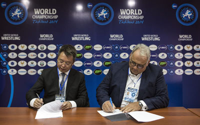 The agreement was made official at a signing ceremony during the 2014 Wrestling World Championships in Tashkent, between United World Wrestling’s President Nenad Lalovic and Gang Cui, Executive Director of Taishan.